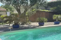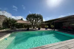 Le jardin méditerranéen exposé Sud - Ouest prolonge les espaces de vies avec une piscine de (7.90 x 3.50), un jacuzzi, deux terrasses en bois exotique, un préau carrelé avec sa charpente en bois apparente, un abri bois, une cave, un puits et deux places de stationnement.